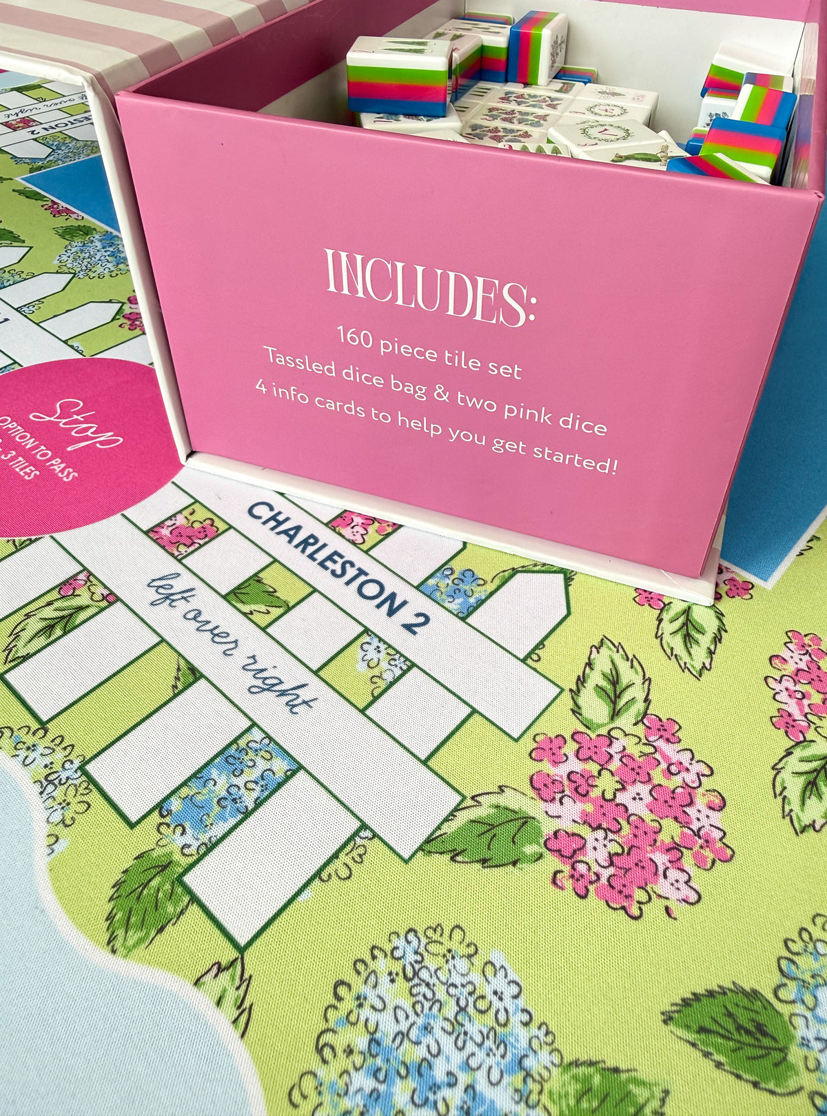 The Sweet Carolina Mahjong Collection features original hand-painted watercolor artwork etched onto premium acrylic tiles. Inspired by hydrangeas in bloom, towering Carolina pines, coastal blues, and mountain greens, this set captures the color, warmth, and unmistakable charm of the Carolinas in every detail.